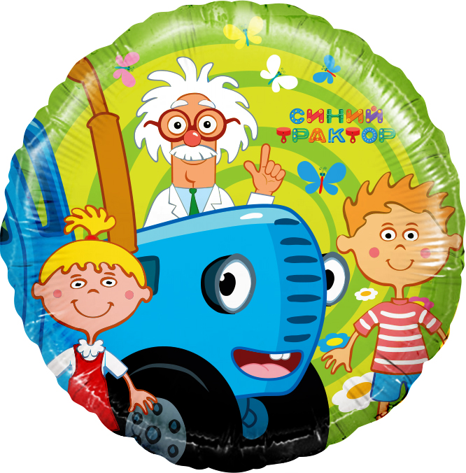 —Шар (18''/46 см) Круг, Синий трактор, Чудеса науки, Зеленый, 1 шт.