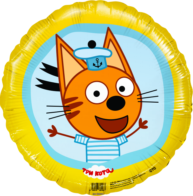 Шар (18''/46см) Круг, Три Кота, Коржик, Желтый, 1 шт.