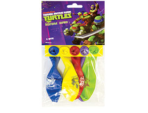 Набор шаров из натурального латекса. 5 шаров с дизайном на тему мультфильма Черепашки Ниндзя в упаковке с хедером ЋВесёлая Затея#Л - идеальное решение для продажи воздушных шариков, в магазине самообслуживания.