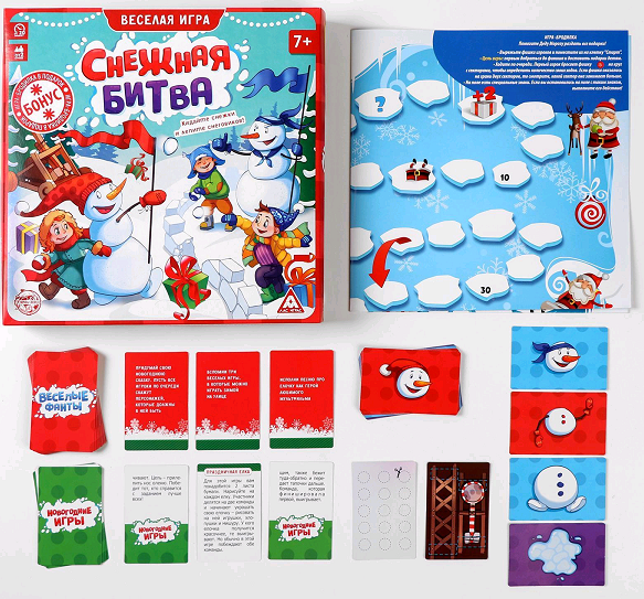 Разделитесь на 2 команды. Сложите из карточек игровое поле. Затем вырежьте картонные снежки и склейте катапульты. Запускайте «снаряды» на поле и собирайте из них снеговиков! А если вы промахнулись, вытягивайте карточки с весёлыми фантами.